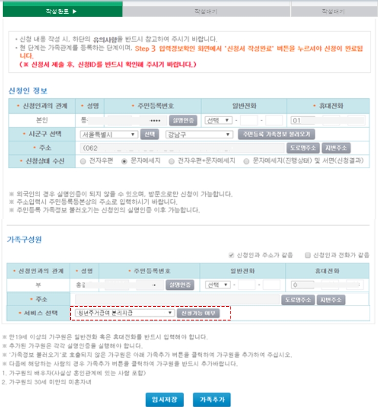 - (step1) 신청정보 입력 – 신청인 및 가족구성원