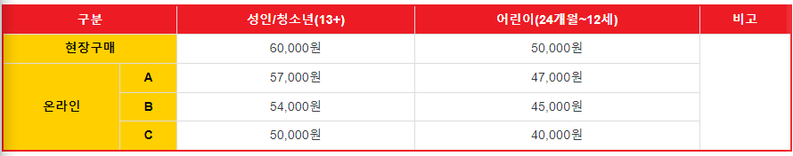 아래의 1일 이용권 가격은 온라인 사전예약 구매이며 10% 할인된 가격입니다.