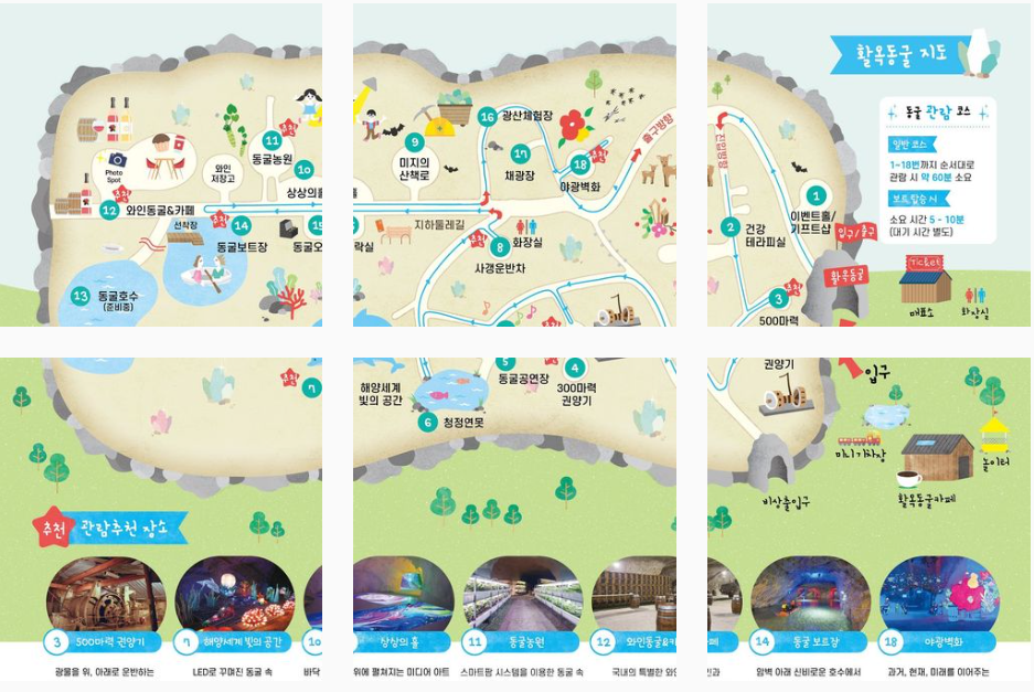 활옥동굴은 총 18개의 코스로 이루어져 있습니다.