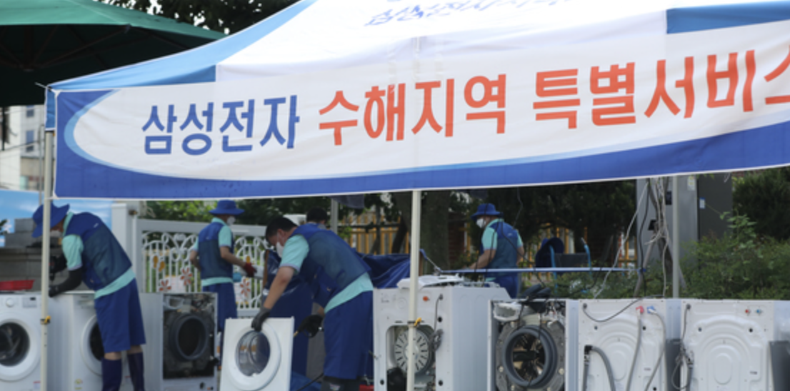 이에 행정안전부는 가전 3사(삼성/LG/위니아)와 협력하여 침수피해 지역 주민의 가전제품을 무상수리하는 서비스 지원을 실시한다고 합니다.