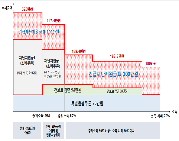 ** 재난지원금은, 아동돌봄쿠폰, 지자체생계지원 등 중복 혜택 가능합니다.