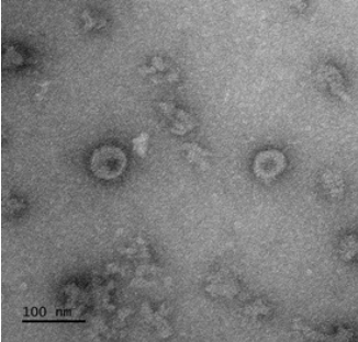 □ 코로나19 바이러스항원(Spike)으로 구성된 바이러스유사체 투과전자현미경 (TEM) 이미지