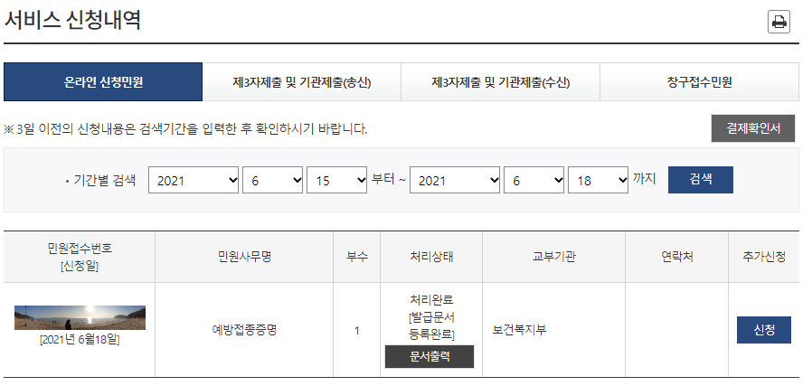 정부24 홈페이지 코로나19 예방접종 증명서 온라인 출력 방법