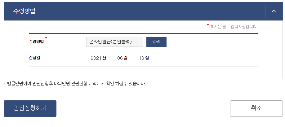- 다음으로 "민원신청하기"를 클릭합니다.
