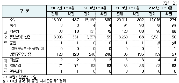 * 수두, 유행성이하선염 2019년 대비 약 26~30% 감소, 폐렴구균 감염증 2019년 대비 16% 증가