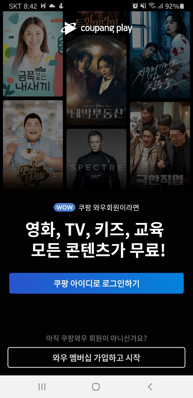 왜냐하면 쿠팡 플레이는 쿠팡 와우 회원이 사용할 수 있는 무료 서비스라는데, 기존 쿠팡 와우 회원이면서도 신경을 쓰지 않아서 모르고 있었던 것입니다. ㅋㅋ