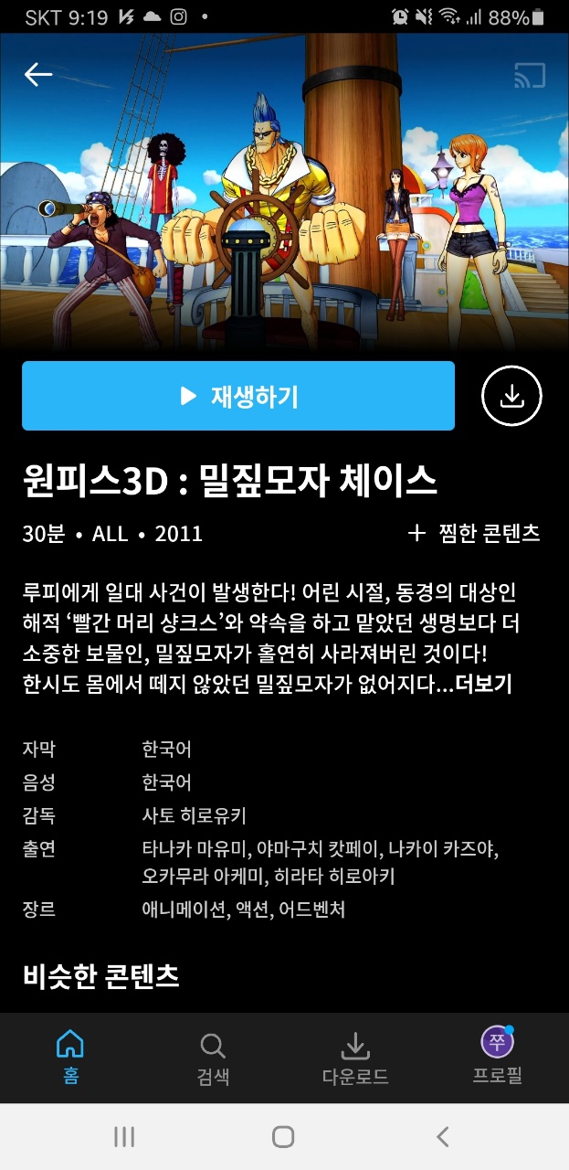 예를 들면 쿠팡 플레이에서는 모두의 사랑을 받는 "원피스" 그리고 오래된 만화지만 인기 있는 '슬렘덩크'도 있습니다.