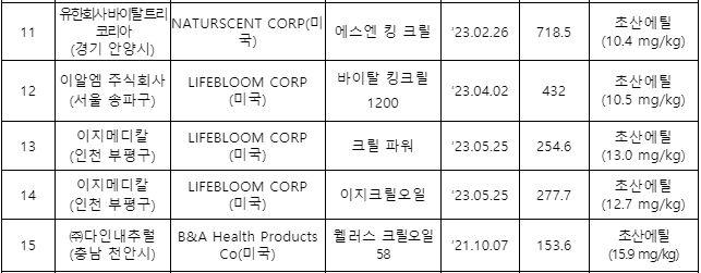 한편, 에톡시퀸과 추출용매의 검출량은 일일허용노출량 등을 고려해 볼 때 인체에 위해할만한 수준은 아니었습니다.