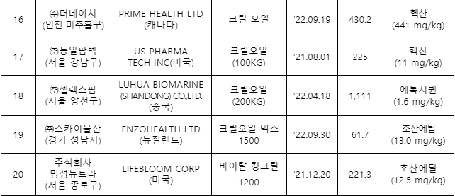 유통 크릴오일 제품 검사 결과, 49개 제품 부적합
