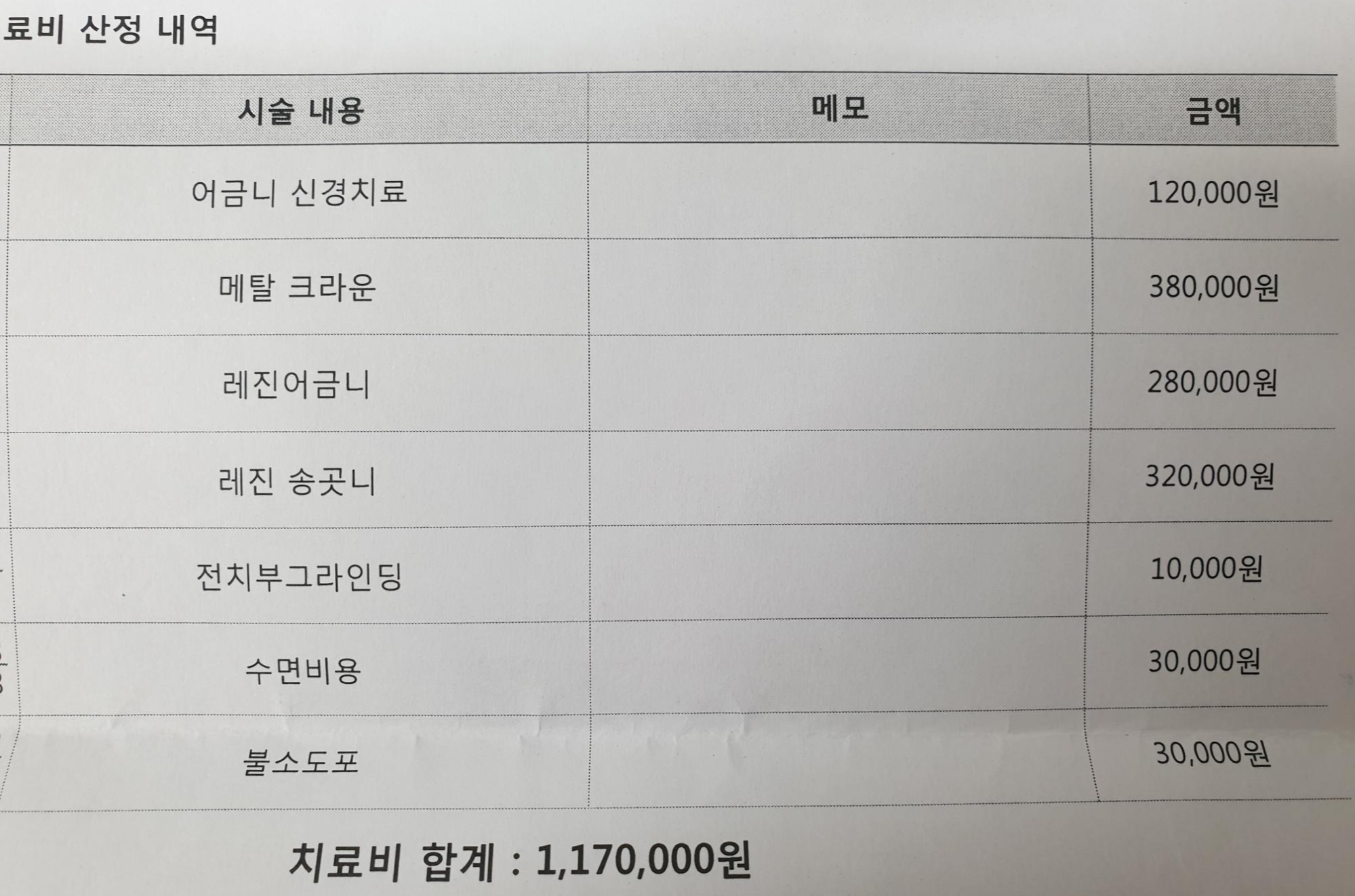 그날 기억으로는 신경치료가 개당 3만원인가 했던 것 같아요.