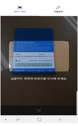 카드등록(모바일앱 내지갑-카드등록-카드뒷면의 바코드 인식)