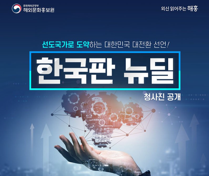 정부는 지난 7, 코로나19 위기극복 및 포스트-코로나 시대 경제사회구조 변화 대응을 위한 국가발전전략으로 한국판 뉴딜 종합계획을 발표하고 이를 본격 추진중에 있습니다.