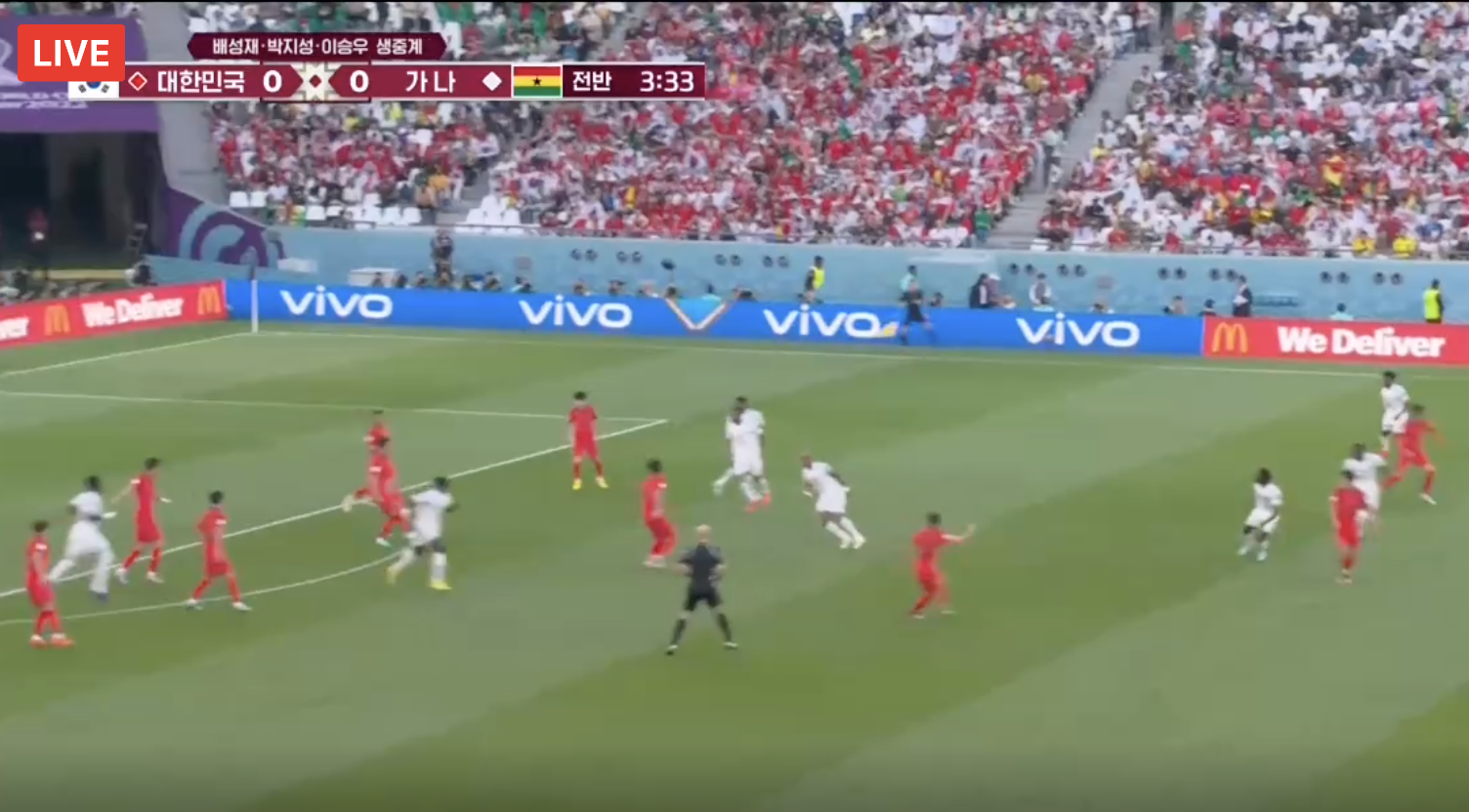 11월 28일(월) 저녁 10시(한국시간)에 열린 한국과 가나의 경기가