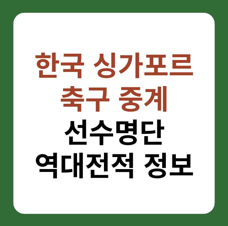 6월 6일(목), 2026 북중미 월드컵 아시아 2차 예선전 한국, 싱가포르 축구 경기가 치뤄집니다. 본문에서는 한국, 싱가포르 축구 중계 채널 소개 및 각팀의 선수명단 그리고 역대전적에 대해서 알아보겠습니다.