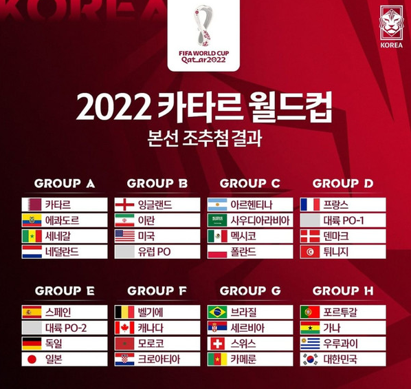 오늘 11월 24일(목) 저녁 10시 2022 카타르 월드컵 한국과 우루과이 경기가 열립니다.