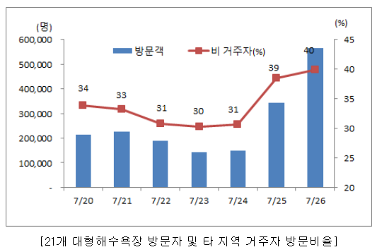 ㅁ 해양수산부(장관 문성혁)는 7월 27일 기준으로 집계한 해수욕장 이용객 통계를 29일(수) 발표하였다.