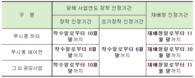 10. 사업의 착수 및 품목별 장착 인정기간