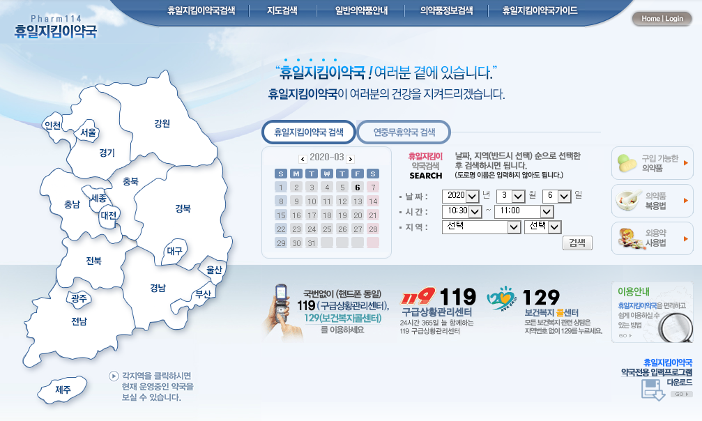 먼저 [휴일 약국 찾기] [휴일 지킴이 약국]는 인터넷 사이트 "휴일 지킴이 약국"을 검색해서 홈페이지로 들어가시면 돼요.