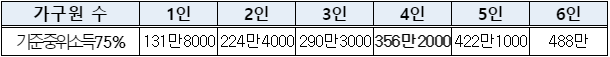 · 소득 : 기준 중위소득 75% 이하