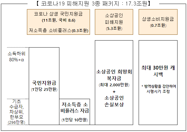 1. 5차 재난지원금, 코로나 19 피해지원(3종 패키지)[17.3조원]