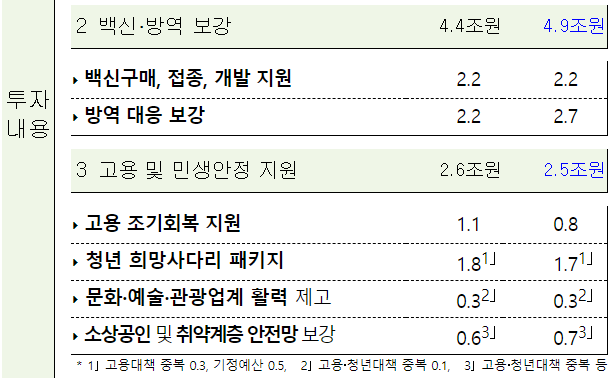2. (5차 재난지원금 증액) 소상공인, 재난지원금, 방역, 민생지원 등 중점 투자