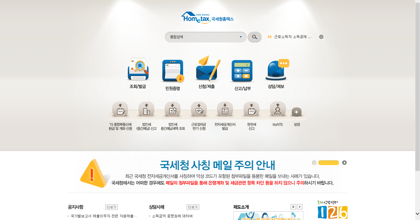 -> 먼저 인터넷 홈페이지에서 "홈텍스" 혹은 "국세청"을 검색하고, 클릭해서 들어갑니다.