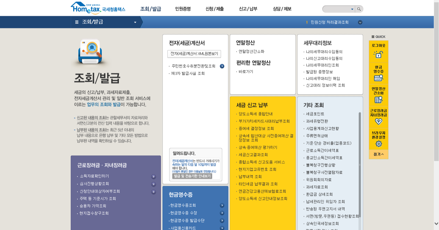 -> 조회/발급 란을 들어가시면 위의 사진처럼 화면이 나옵니다.
