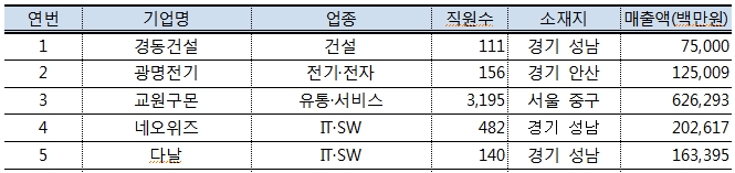 * 상장기업 10개사 포함(코스피 5개 / 코스닥 5개)