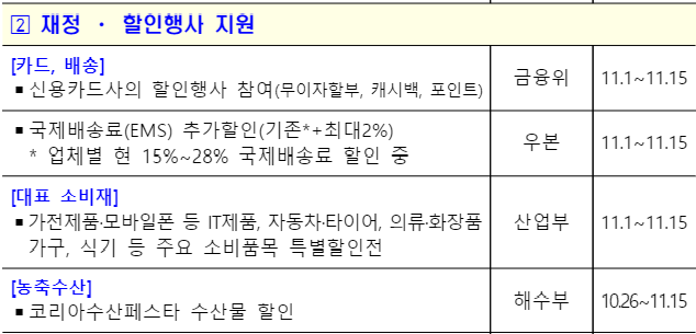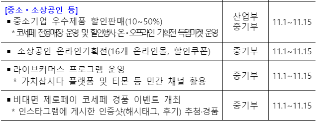 정부도 농축수산물과 중소기업·소상공인 제품을 보다 할인된 가격으로 판매할 수 있도록 정부예산으로 지원한다.