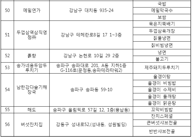 2020 코리아 고메위크 참가 한식당(서울) 목록