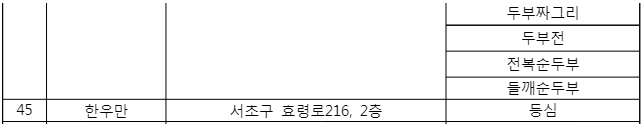 본 저작물은 농림축산식품부에서 ‘20작성하여 공공누리 제1유형으로 개방한 전국 250여 개 한식당 대표메뉴를 할인된 가격에 즐기세요!(작성자:식품산업정책관)’을 이용하였으며, 해당 저작물은 농림축산식품부 홈페이지에서 무료로 다운받으실 수 있습니다.