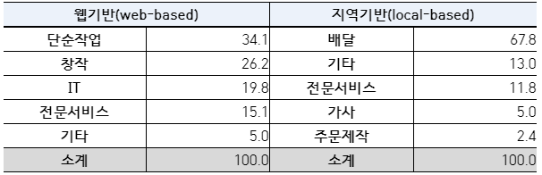 * 대행업체가 있거나 플랫폼이 대행업체 역할까지 하는 호출형 플랫폼(퀵·대리 등)
