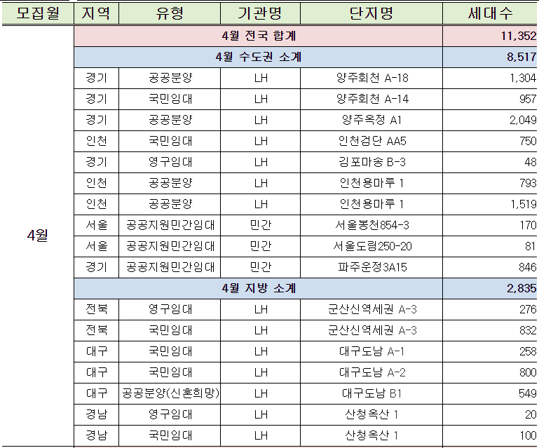 4월 1일부터 올해 공공주택 입주자 모집 달력 확인하세요