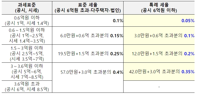 * 과세표준 = 공시가격 × 공정시장가액비율(공동주택의 경우 60%)