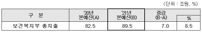 2021년 보건복지부 예산 89조5766억 원 최종 확정