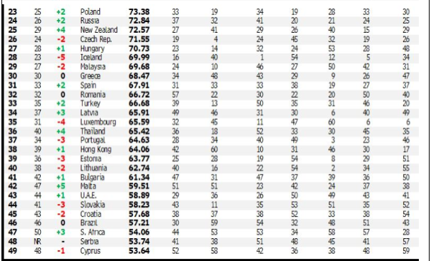 * TOP3 국가점수(‘20’21): 싱가포르(32) 87.76, 스위스(43) 87.60 독일(14) 86.45