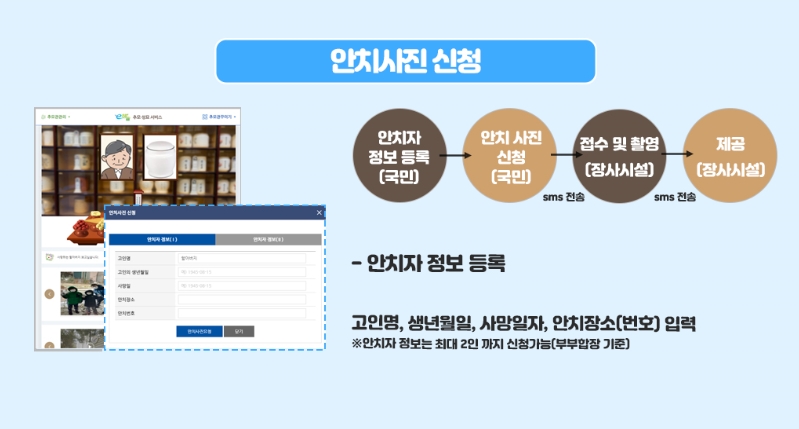 * 안치사진 신청 및 제공가능 기간 : ’21.1.25.(월) ~ 2.10.(수)