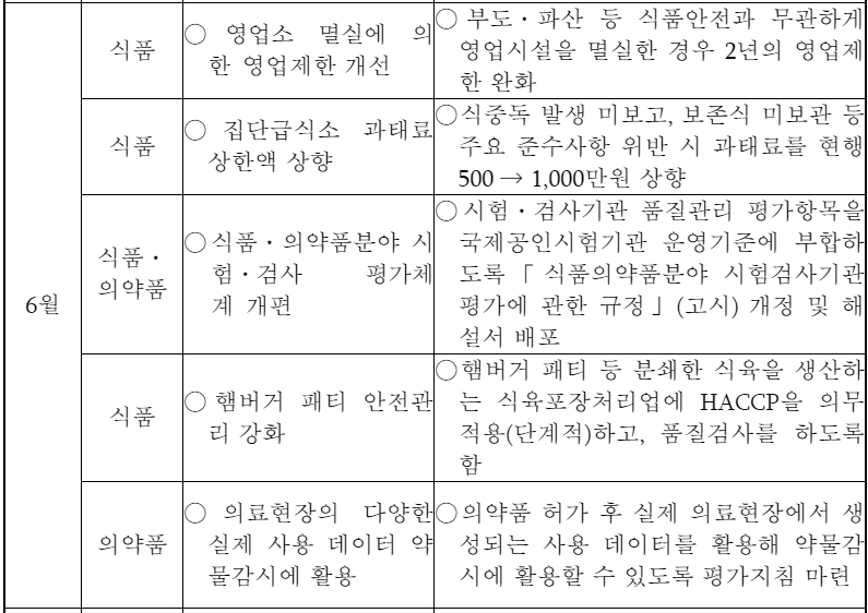 부도·파산  식품안전과 무관하게 영업시설 철거로 영업 취소된 경우 2년의 영업제한을 받지 않도록 개선하고(6) 코로나19  유행으로 집합교육이 어려운 경우 예외적으로 신규 영업자 위생교육을 원격교육   있도록 개선하겠습니다(1).