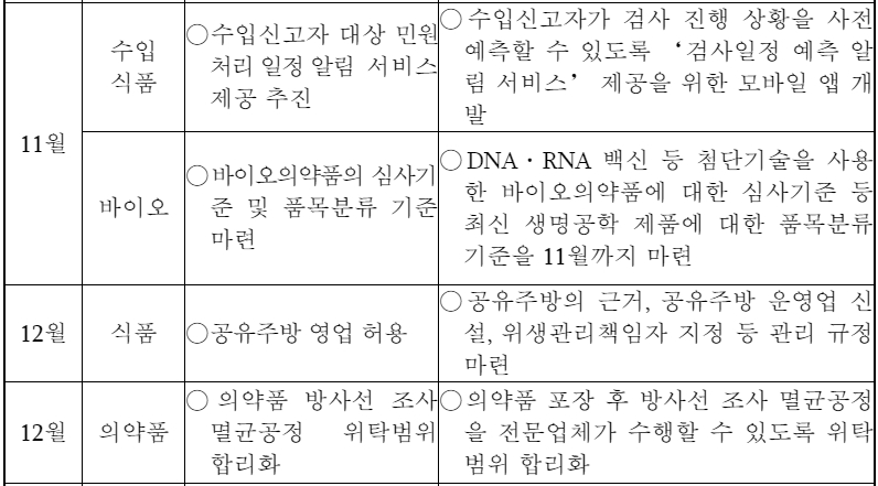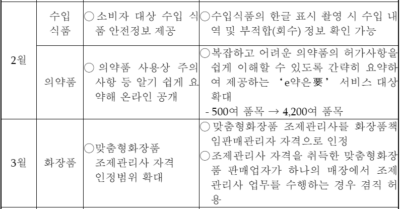2021년 식약처 식품·의약품 주요 안전정책 추진 일정