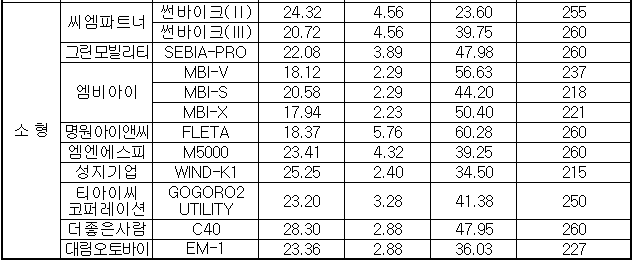 * (전기버스) 대형 1억원, (전기이륜차) 경형 75만원, 소형 115만원, 대형기타형 130만원