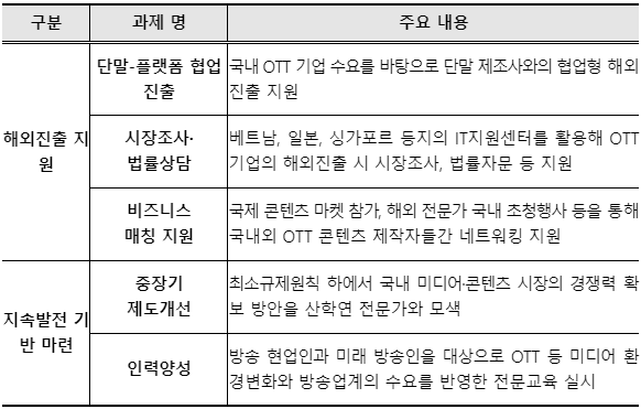 ㅇ 세계시장을 무대로 경쟁이 이루어지는 OTT 산업에서 우리 기업에 대한 지원을 확대하기 위한 것이다.
