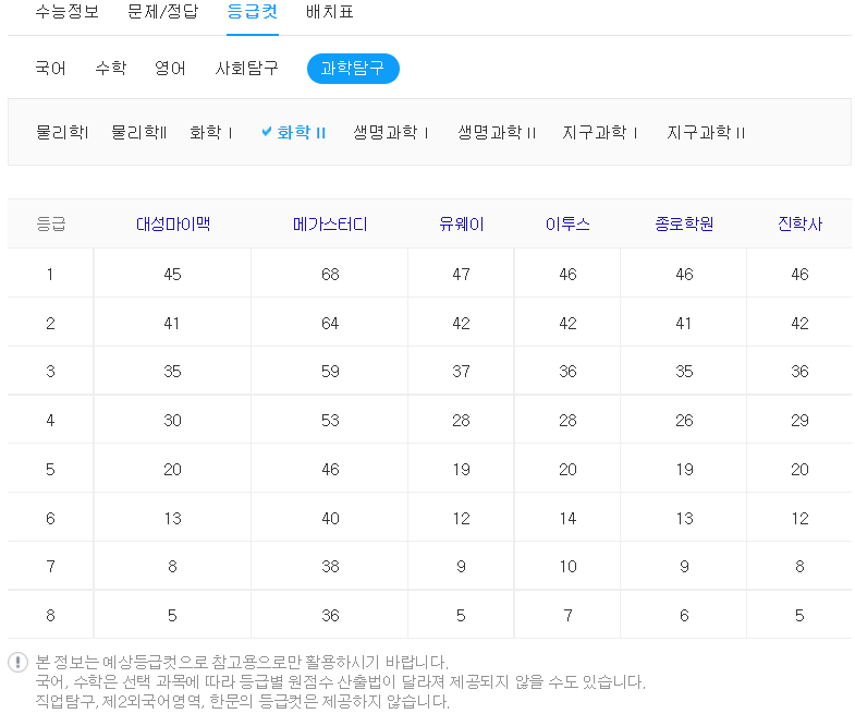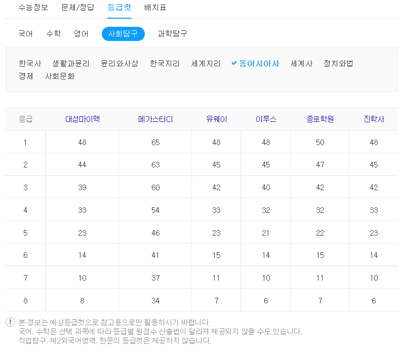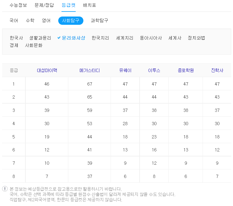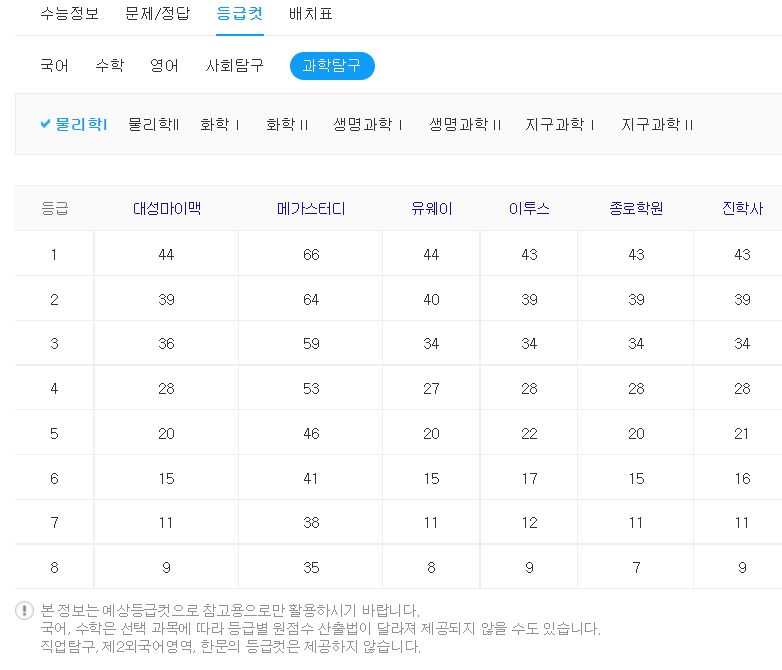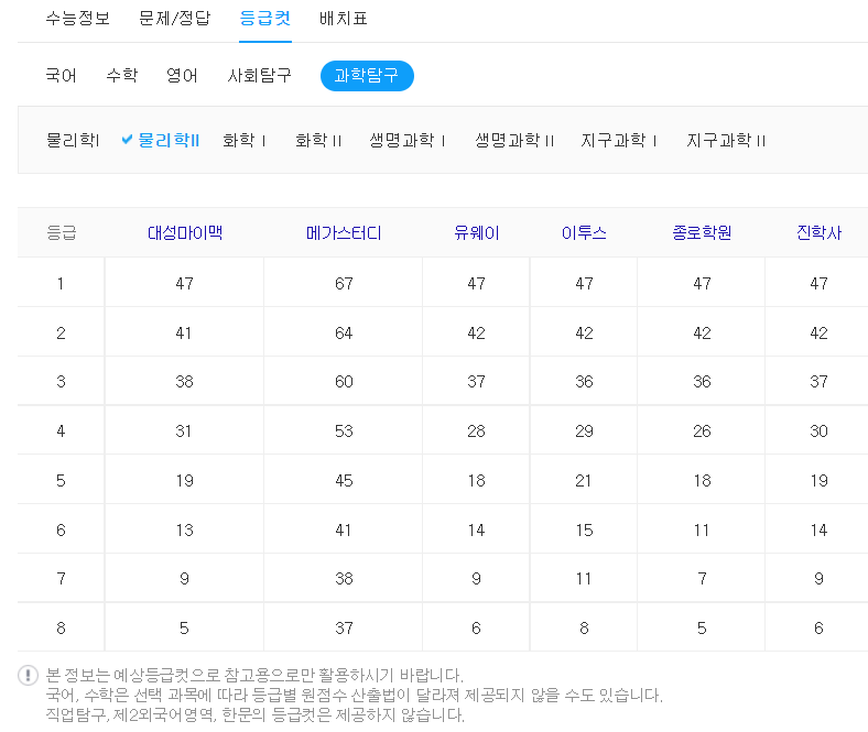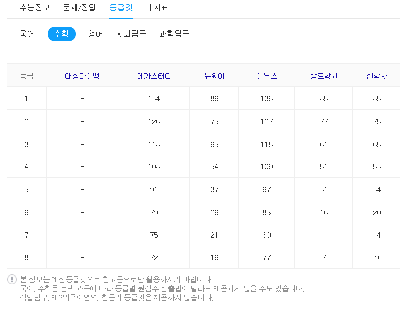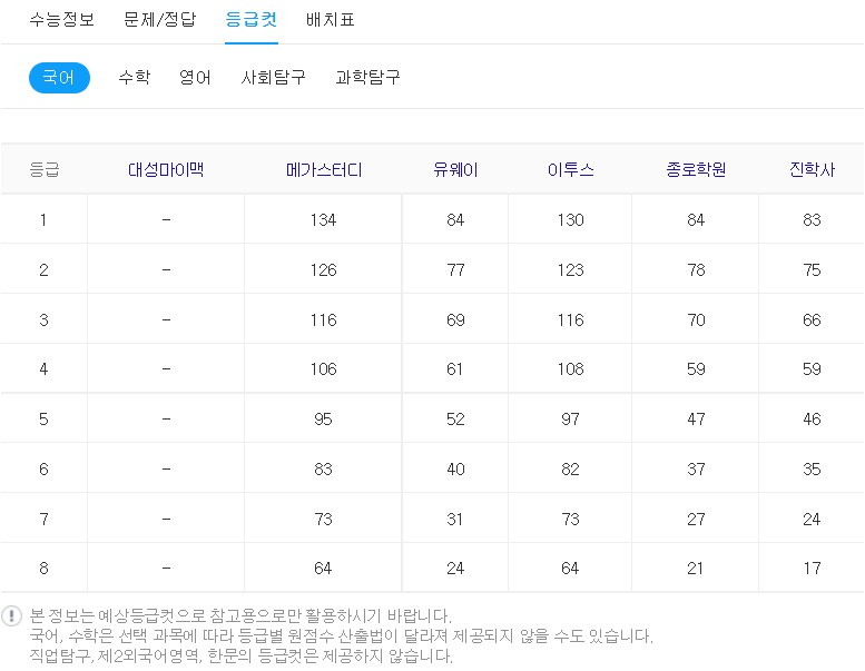 등급 컷이 중요한 이유는 각 대학별로 원하는 등급이 있기 때문입니다.