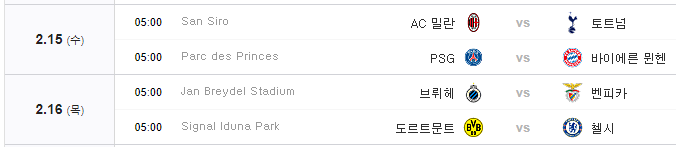 - 2022-23 UEFA 챔피언스리그 16강 1차전 경기 일정