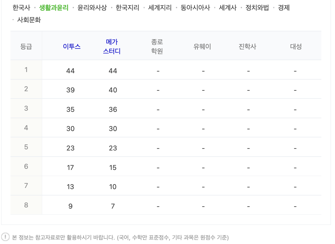 * 직탐영역 예상 등급컷 통계는 아직 나오지 않았습니다.