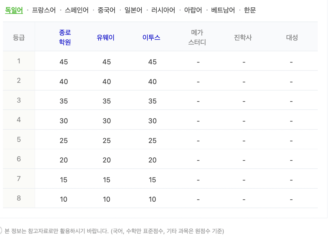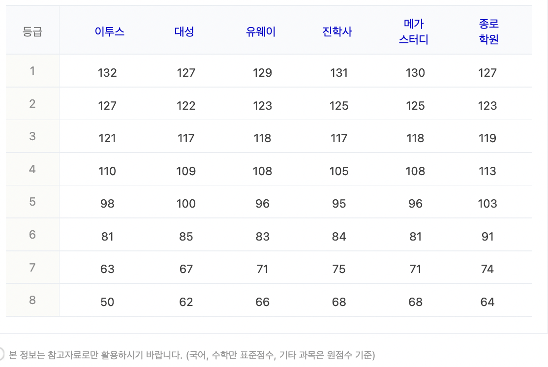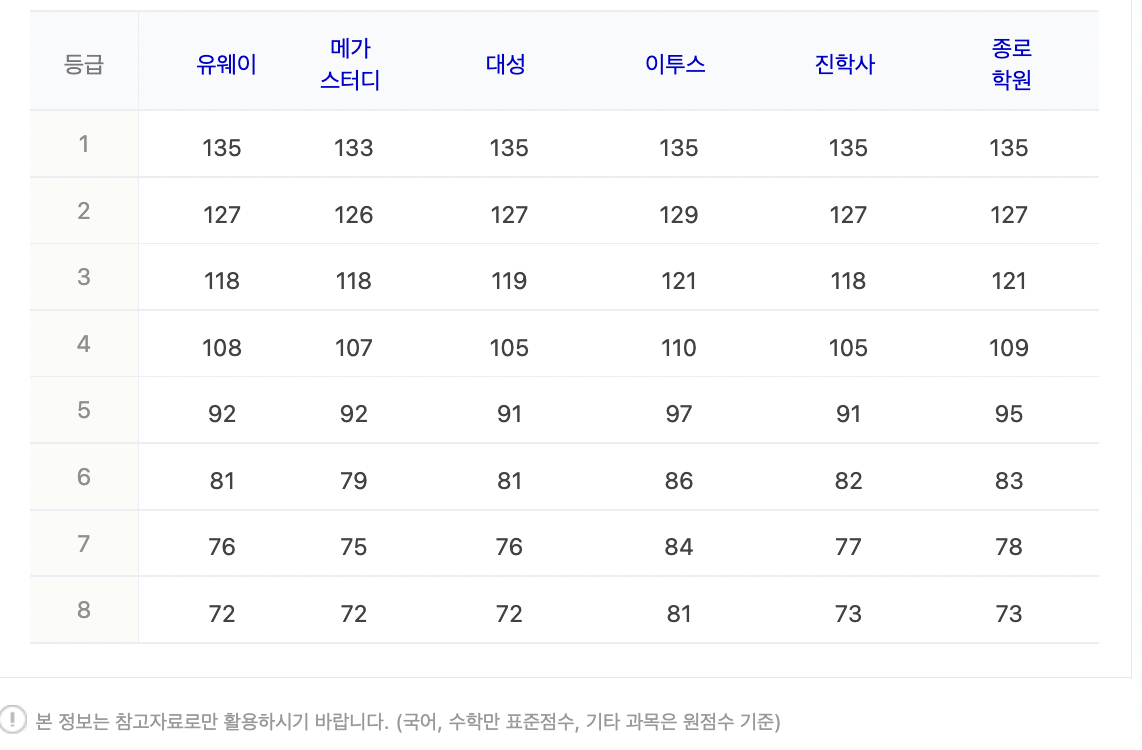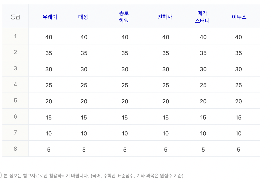등급 컷이 중요한 이유는 각 대학별로 원하는 등급이 있기 때문입니다.