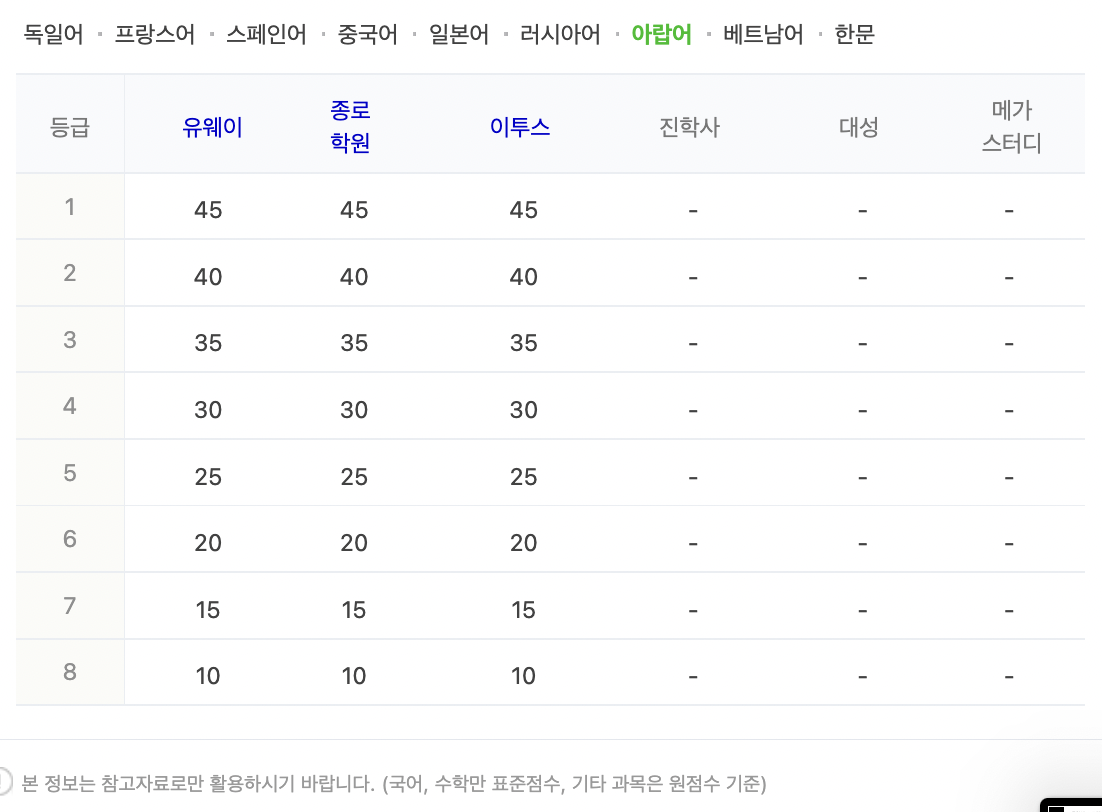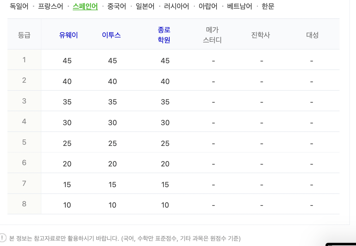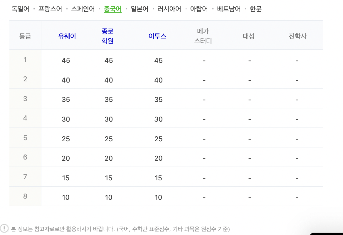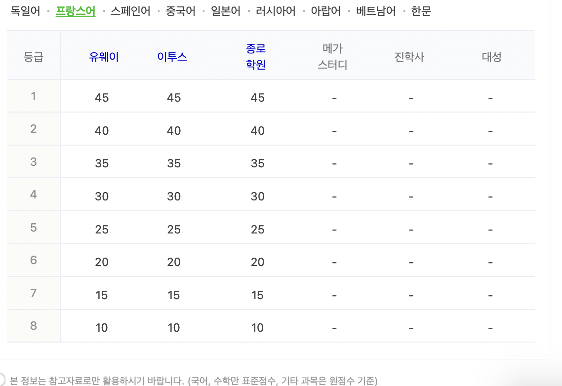 등급 컷이 중요한 이유는 각 대학별로 원하는 등급이 있기 때문입니다.