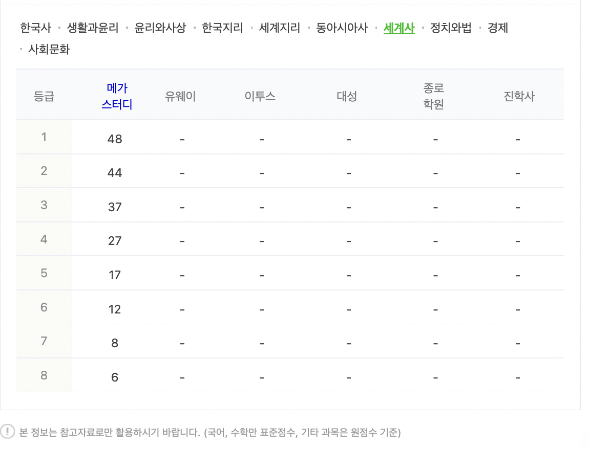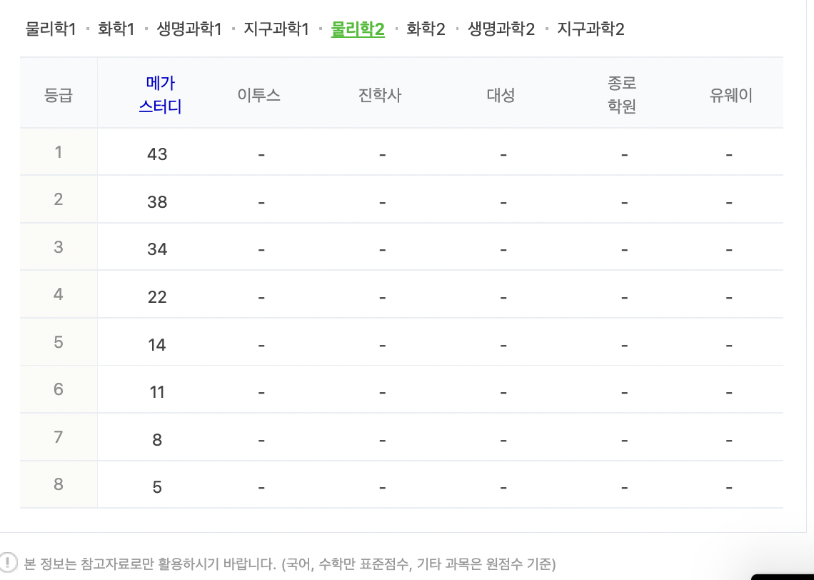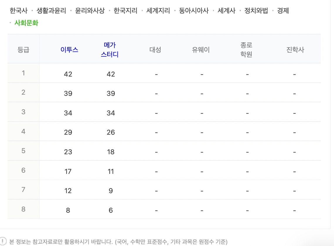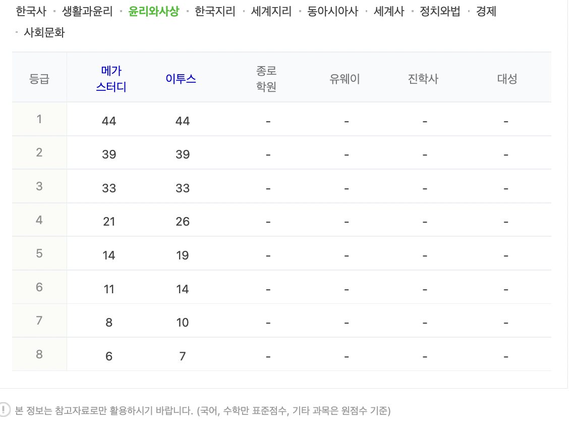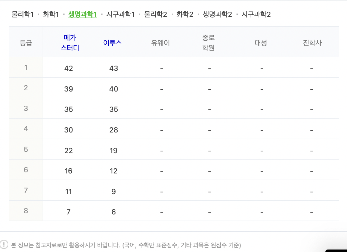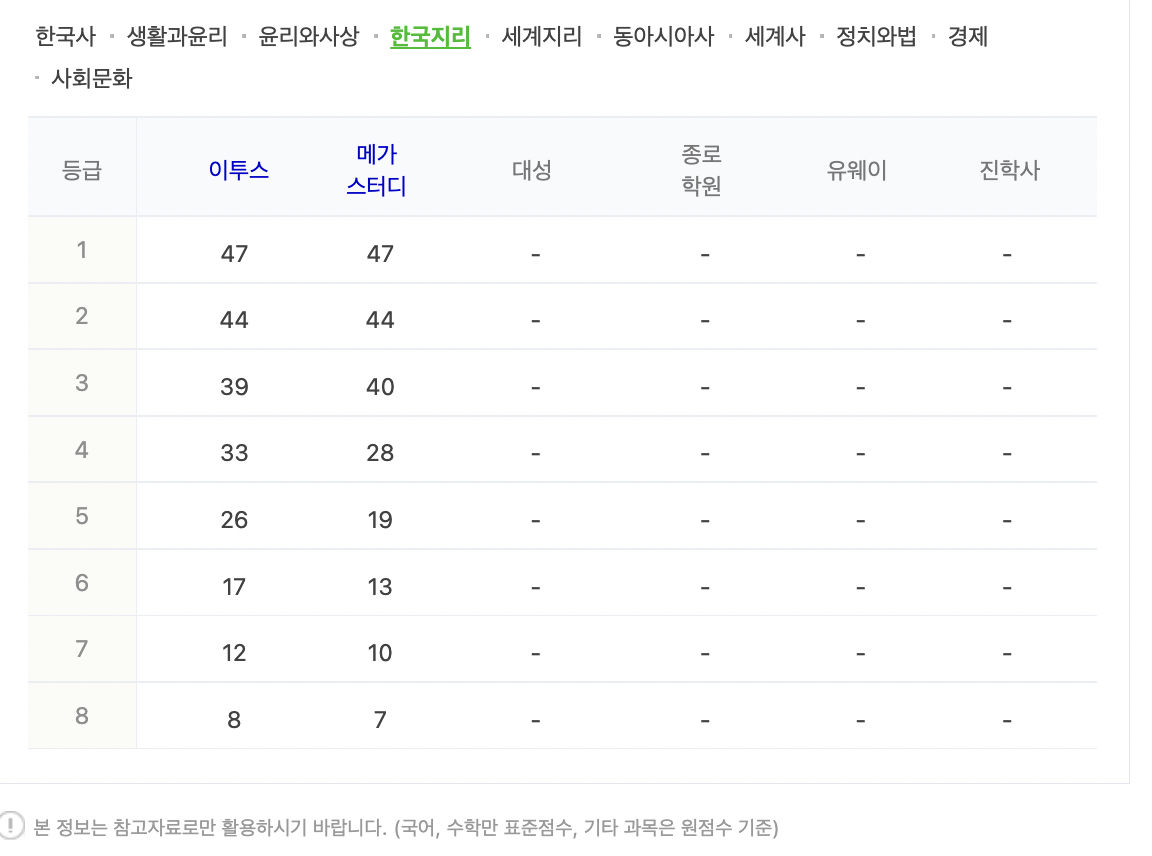 * 직탐영역 예상 등급컷 통계는 아직 나오지 않았습니다.