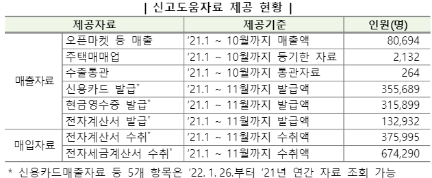 ○ 모든 사업자에게 매출자료 6개와 매입자료 2개 항목을 제공합니다.