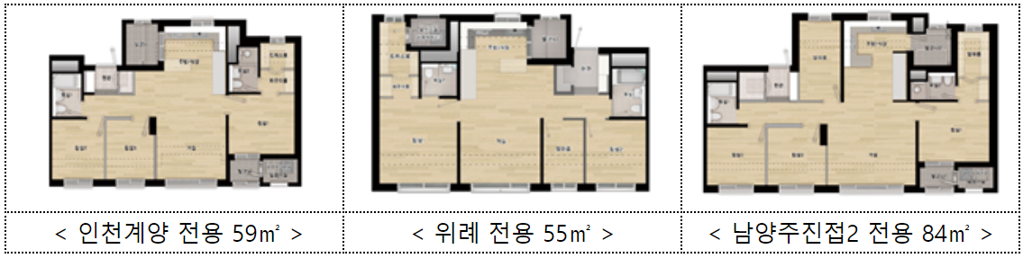 □ 아울러, 청약 선호도가 높은 전용면적 46m2부터 84m2까지 다양한 규모의 주택이 공급되며, 구체적인 평면도는 주택설계 등이 승인되는 본 청약시점에 확정될 예정이다.