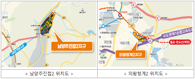 (남양주진접2 지구) 남양주진접2 지구는 별내신도시왕숙신도시 생활권을 공유하는 입지로서, 풍부한 녹지(수락산왕숙천 등)와 편리한 도시인프라를 동시에 누릴 수 있도록 조성될 예정입니다.